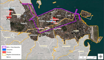 Mapa do perímetro da Área de Especial Interesse Urbanístico (AEIU) do Porto Maravilha