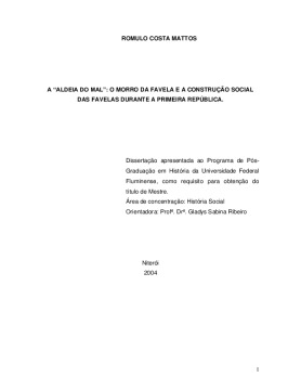 A "Aldeia do Mal": o morro da favela e a construção social das favelas durante a Primeira República.