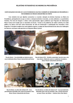Relatório Fotográfico de Violações de Direitos no Morro da Providência no Morar Carioca