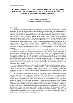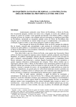 DO INQUÉRITO ÀS PÁGINAS DE JORNAL: A CONSTRUÇÃO DA IDEIA DE MORRO DA PROVIDÊNCIA ENTRE 1908 E 1930