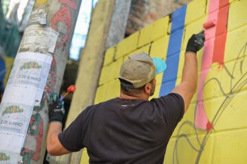 Festival Galeria Providência - Criança participando da oficina de grafite - Edição 2017