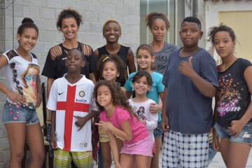 Festival Galeria Providência - Crianças posam para foto na frente do Mural de RDOISÓ - Edição 2017 - Registro Fotográfico