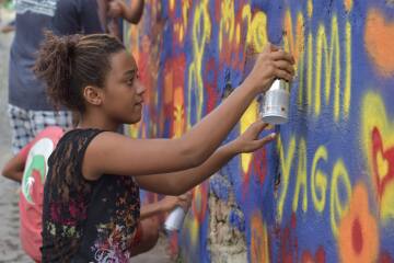 Festival Galeria Providência - Crianças Participando da Oficina de Grafite - Edição 2017