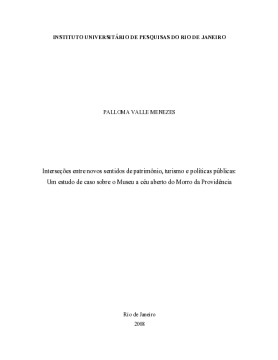Interseções entre novos sentidos de patrimônio, turismo e políticas públicas: Um estudo de caso sobre o Museu a céu aberto do Morro da Providência